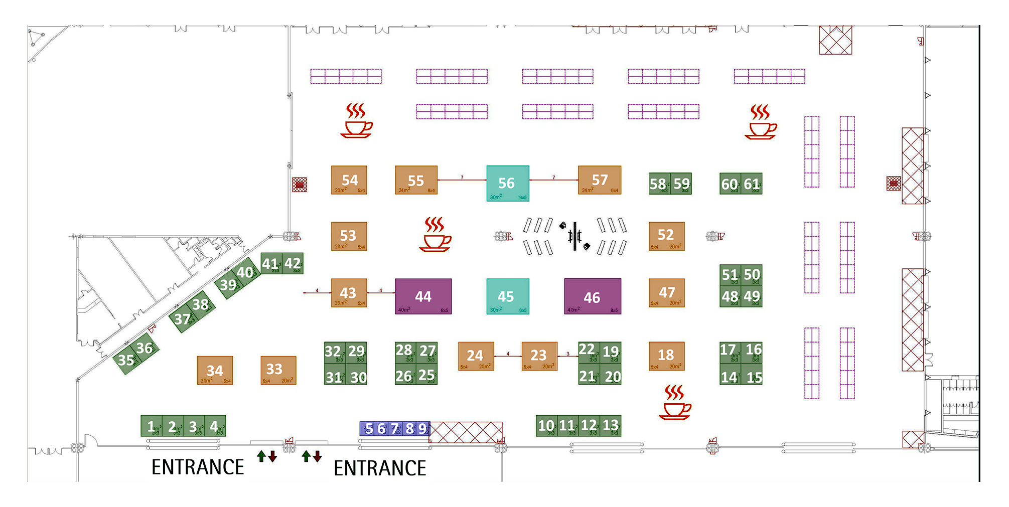 To book an exhibition space, please fill in the order form to secure your preferred location in the below floorplan.