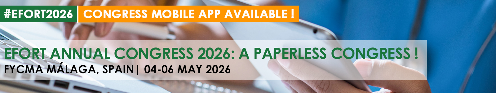 The 27th EFORT Annual Congress wil be held in Málaga, Spain, from Monday 04 to Wednesday 06 May 2026 with as main theme: "Innovations and transdisciplinarity in the orthopaedic future".