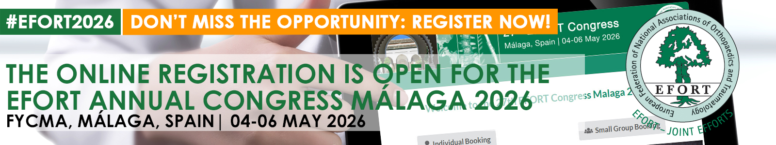 The 27th EFORT Annual Congress wil be held in Málaga, Spain, from Monday 04 to Wednesday 06 May 2026 with as main theme: "Innovations and transdisciplinarity in the orthopaedic future".