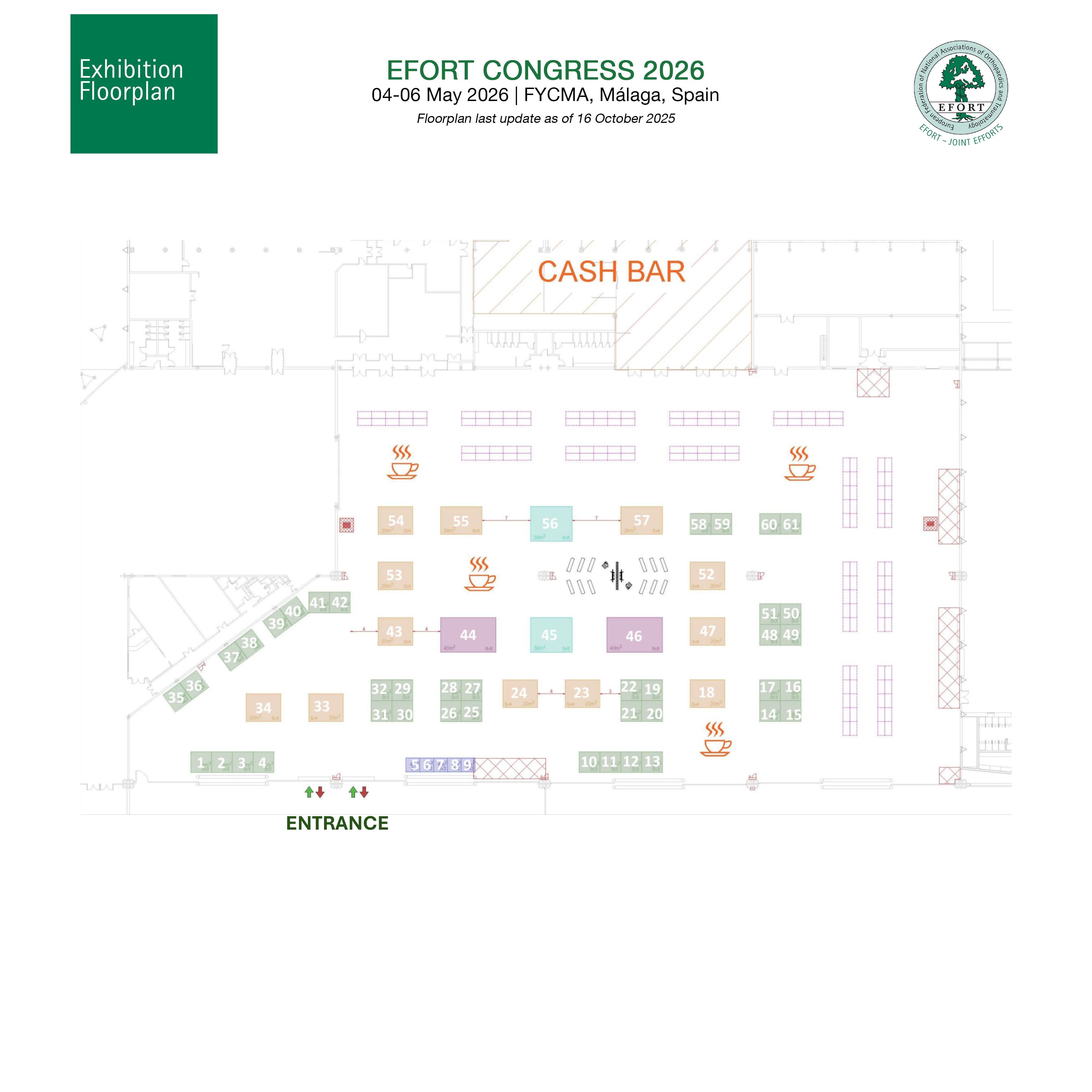 PThis EFORT exhibition floor plan will be UPDATED ON A REGULAR BASIS. Please check back on this page frequently to see all the changes and the latest bookings.