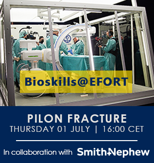 EFORT is pleased to collaborate with industry partners and to have the opportunity to trial creative new formats of educational sessions. Join us for the second time for the Bioskills@EFORT Sessions with Live surgery on anatomical specimens in a clinical environment. These are true-life conditions a surgeon might face in executing a therapeutic plan to approach a traumatic injury.