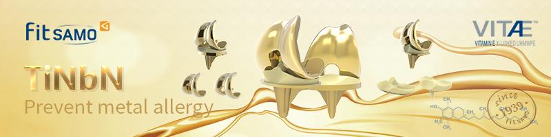 The surface of the femoral condyle of the Golden Knee System is coated with titanium niobium nitride. While the content of chromium and nickel ions is below the detection limit, the titanium niobium nitride coating can reduce the release of sensitized cobalt ions by more than 90%. Allergies play a considerable role. The combination of the femoral condyle covered with titanium niobium nitride coating and VITAMINE X-LINKED UHMWPE greatly increases the wear resistance of the joint