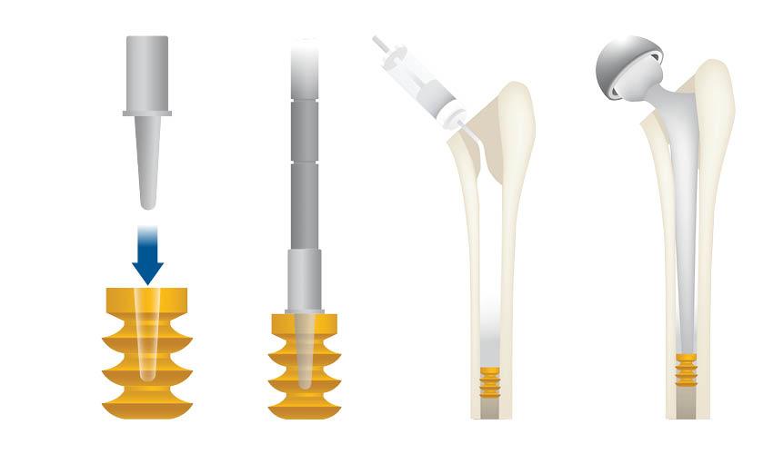 VarioPlug® is a resorbable, biodegradable cement restrictor for orthopaedic use. It is designed to occlude the medullary cavity before the introduction of bone cement. VarioPlug® prevents cement penetration in the diaphysis, facilitates cement pressurisation during implantation of prosthesis and fully resorbs within a few days. Reduced distal pressure Resorbable Biodegradable Easy to use VarioPlug® is available in a wide range of sizes