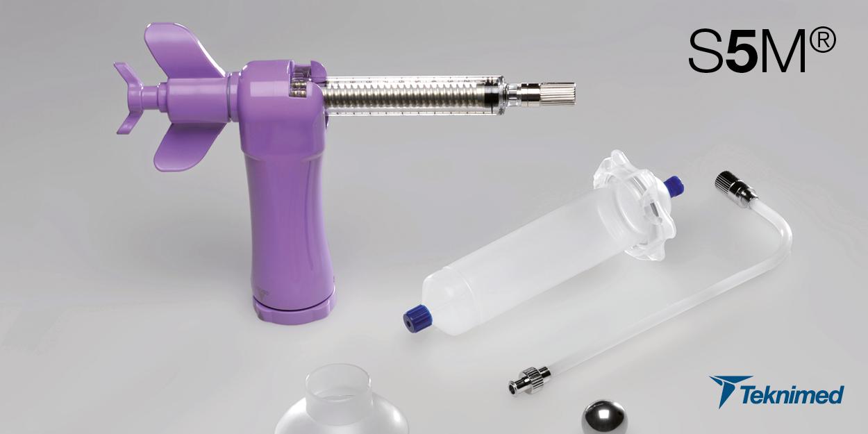 Mixing & injection system for vertebroplasty Bone Cements. The first bone cement delivery gun equipped with an automatic pressure-overload safety feature. Teknimed brings bone cement preparation and delivery to a new level with a Safe, Simple, Robust complete kit specifically designed to treat vertebral compression fractures by vertebroplasty or kyphoplasty.