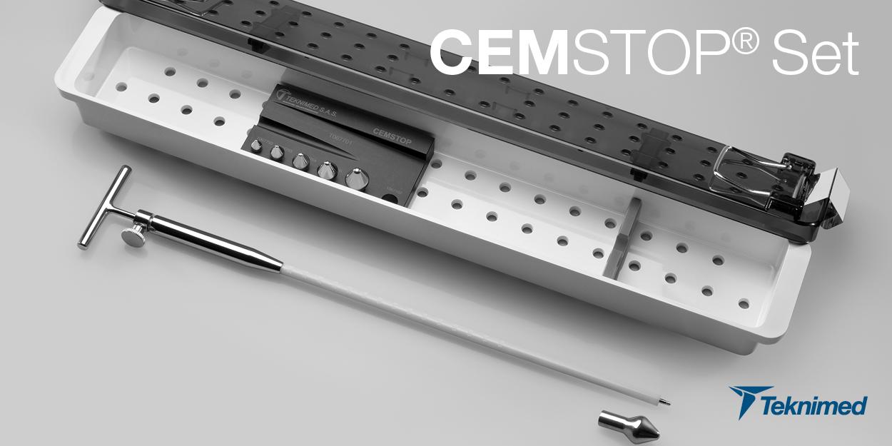 Bio-absorbable Cement Restrictor. CEMSTOP® aIIows a sealing of the medullary cavity before the introduction of acrylic cement during hip arthroplasty surgeries. CEMSTOP® Iimits the cement progression into the diaphysis, and facilitates cement pressurization. CEMSTOP® is completely dissolved within a few days of implantation.