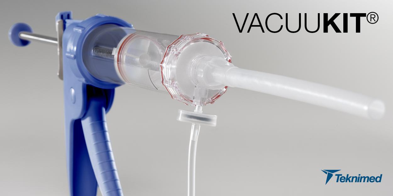Vacuum mixing & injection system for low & medium viscosity arthroplasty bone cements. The mechanical stability of PMMA bone cement during arthroplasty procedures is a very important issue. Although intrinsic formulation of bone cement is essential, its preparation plays a vital role. VACUUKIT® has been designed to contribute to the porosity reduction during the preparation of bone cement by applying vacuum and thereby increase the mechanical stability.