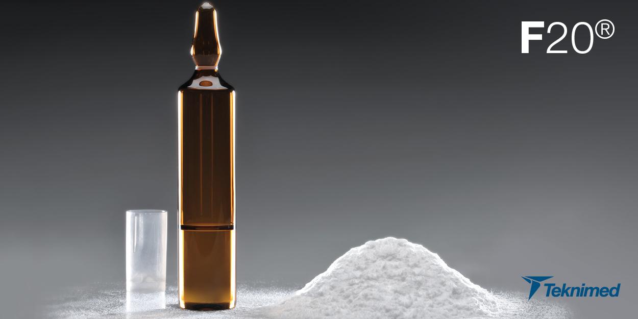 Pasty Bone Cement for vertebroplasty & kyphoplasty. F20® radiopaque bone cement is a ready to use, medium viscosity, low exothermic, self-curing bone cement with a high content of radiopaque agent for a perfect level of visualization and safety required during percutaneous vertebral bone augmentation procedures. Its composition has been optimized to get the most suitable handling properties for surgeon’s convenience. F20® comes as an ampoule of sterile liquid and a pouch of sterile powder (liquid monomer and powder polymer).