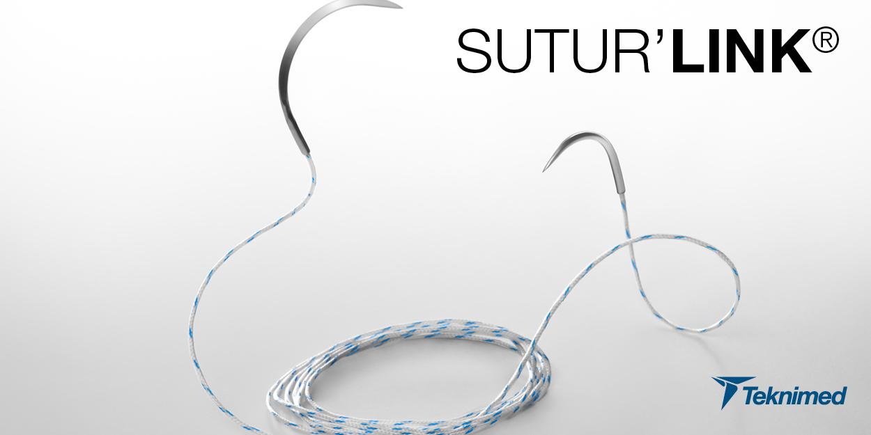 Suture - Tendons and Ligaments Reintegration. SUTUR’LINK® is made of strands of high density polyethylene (UHMWPE) braided with a blue marker wire made of polypropylene to better tailor the product. SUTUR’LINK® is a non absorbable suture wire of very high mechanical strength. Its properties are among the best of those proposed on the market to realize strong and non removable sutures for orthopedic surgery. SUTUR’LINK® is crimped with a needle at each extremity: one round needle, 3/8 x 25 mm, intended for suturing tendons and ligaments, and one triangular needle, 1/2 x 40 mm, intended for trans-bone reinsertions and tuberosity fixations.